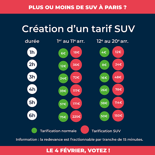 "Etes-vous pour ou contre un tarif spécifique pour le stationnement de voitures individuelles lourdes, encombrantes, polluantes".