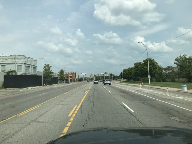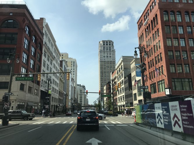 Depuis la ville a connu une transformation rapide. Les ruines ont été majoritairement rasées, les tours et les bâtiments ont été restaurés ou sont en phase de l’être. Mais surtout, l’avènement de l’automobile a laissé à Détroit un réseau routier imposant qui donne ce côté très américain au paysage. La ville est très étendue, elle fait 370 km² pour 675.000 habitants. En gros, c’est 3 fois et demi la taille de Paris (105 km²) pour 3 fois et demi moins d’habitants (2.175.000).