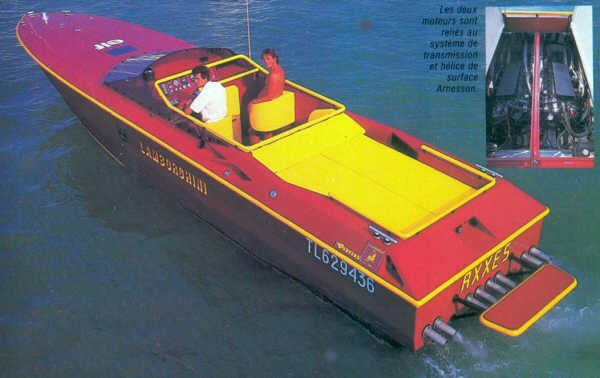 Tel que je me connais, j’ai pourtant dévoré le magazine de A à Z, en dehors des encarts publicitaires et mentions légales, et encore... Et sans doute ai-je répété la lecture des articles les plus intéressants, dont celui de la page 32 consacré aux "Lamborghini sur terre et mer", qui tenait évidemment la vedette (c’est le cas de le dire). Avec un peu de chance, j’ai même dû essayer de croquer au crayon les engins en question sur feuille A4 en prenant modèle sur les photos, pour un résultat probablement loin de mes attentes. La seule tentative satisfaisante dont j’ai souvenir en la matière réside dans le portrait étonnamment réussi d’une Mercedes W124 de trois-quarts avant, réalisé aux Caran d’Ache sur Canson et inspiré de la photo d’un exemplaire de L’Auto-Journal lui aussi acquis en période estivale.