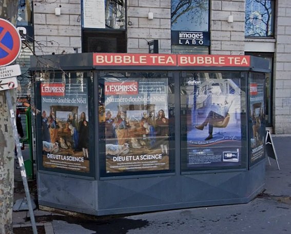 Le kiosque à journaux de la Place Bellecour. Il existe encore ! (Crédit : Google Maps)