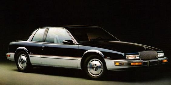 Merci d’ailleurs d’accueillir la Buick Riviera 1986. Un coupé 2 portes au profil un peu bizarre, en raison de porte-à-faux démesurés et d’un panneau de custode s’arrêtant abruptement dans l’axe de la roue arrière, sans compter un certain nombre d’équipements pour le moins kitchounets. Selon les versions, l’acheteur pouvait ainsi disposer d’enjoliveurs de roues imitant une jante à rayon, d’une peinture biton, d’un toit en vinyle blanc, ou d’un intérieur rouge criard avec sièges velours.