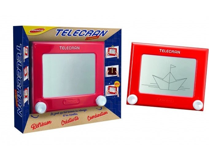 Les mômes d’aujourd’hui sont fascinés par les écrans interactifs, alors que ceux de mon âge (les vieux quoi) avaient tout juste droit à la contemplation passive de la tévé, en couleurs depuis 1967. Le seul truc un peu participatif dont je me souvienne, c’est le Télécran, engin bizarre doté de deux boutons rotatifs déplaçant une pointe permettant de dessiner sur une vitre chargée de poudre, et qu’on secouait pour réinitialiser.