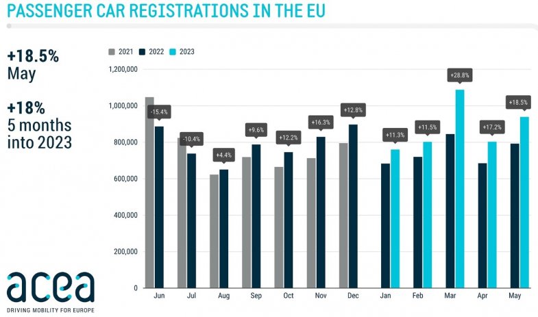Lors des cinq premiers mois de 2023, le marché a progressé de 18%, tiré notamment par le rattrapage de l'Espagne (+26,9%) et de l'Italie (+26,1%).