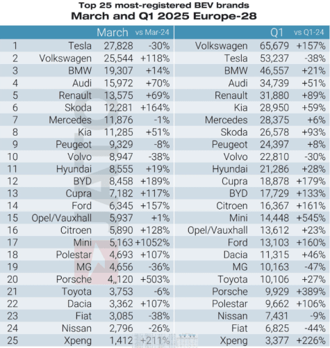 européen : 35,5% des voitures immatriculées au premier trimestre étaient des