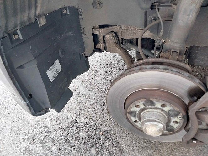 Sur le chemin du retour, je ruminais ma frustration d’avoir dû remettre en place une pièce inutile, quand vers les 160 km/h compteur sur l’autobahn, un mauvais bruit venu -devinez- de l’avant gauche m’indiqua que non seulement j’avais perdu mon temps, mais que j’avais probablement ajouté un problème au problème. Allez, je vous la fais plus courte que les interminables trois minutes et quarante-cinq secondes qu’il me fallut pour rejoindre la première sortie 5 km plus loin, calé à 80 km sur la file de droite. Dans ma précipitation à remonter le toutim en mode énervé, j’avais été assez stupide pour reclipser la partie basse de cette fichue trappe d’accès non pas à l’intérieur mais à l’extérieur du bouclier, permettant à l’air de s’engouffrer dans l’interstice ainsi créé.