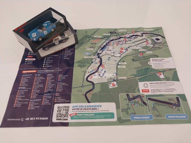 Et bien sûr, il y avait aussi plein d’opportunités de dépenser son argent, les tarifs prohibitifs de certains produits dérivés ne semblant guère dissuader les acheteurs, à en croire les nombreux sacs siglés pendus à autant de mains. Et si Jidé a réussi à me retenir jusqu’aux dernières heures de la course, j’ai fini par craquer sous la pression des milliers de miniatures me faisant de l’œil de leur petits phares dans les trois magasins spécialisés qui les hébergeaient. N’en dites rien à mon épouse, qui ne remarquera peut-être pas la Lancia D20 et la Porsche Spyder 550 stratégiquement choisies au 1/43e pour mieux se planquer sur les étagères. Même si j’ai longtemps lorgné sur une Aston-Martin DBR1 beaucoup plus volumineuse, à laquelle j’ai fini par renoncer parce que je ne me voyais pas la trimballer jusqu’à l’arrivée. C’est du bout de la ligne droite des stands que nous avons assisté à cette dernière, non sans avoir "réservé" nos places deux heures à l’avance, juste devant l’accès emprunté par les 50 voitures rescapées pour retourner au parc fermé. Dont une certaine Ferrari 499P jaune privée qui non contente de devancer une Porsche 963, dama le pion à ses semblables de l’équipe officielle.