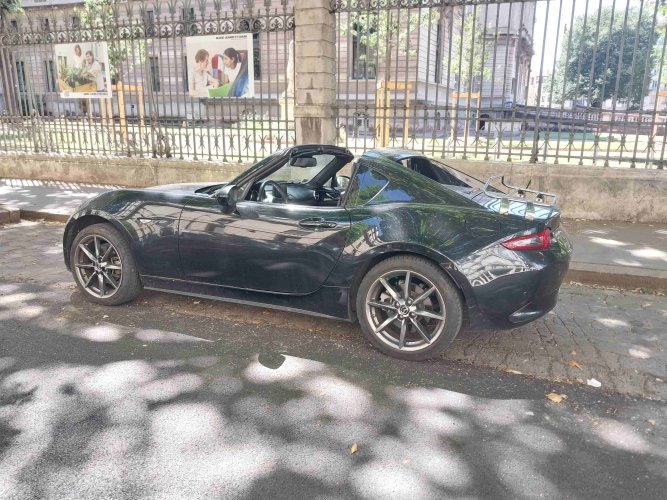 Si elle n’était pas la seule mentionnée, la MX5 n’était pas pour rien dans ma chronique sans pudeur du 18 août 2020, qui titrait carrément "J’aime Mazda". Mais si la ND -quatrième génération du modèle- affichait alors cinq ans d’ancienneté, je n’avais conduit à l’époque que la NA originelle lancée en 1989, et la NC qui vécut de 2005 jusqu’à 2015. Et ce serait encore le cas aujourd’hui si Sophie n´avait eu la grande amabilité de me confier les clés de son auto. Plus question donc de reculer, puisque son exemplaire "Jet Black" s’offre à moi pour une paire d’heures en ce beau dimanche matin ensoleillé. Je décide de sortir à découvert malgré les 34° affichés au tableau de bord, et j’actionne la commande du toit métallique amovible, puisqu’il s’agit d’une version RF (pour "Retractable Fastback") . Treize secondes plus tard, il ne me reste plus qu’à actionner le démarreur invitant le 4 cylindres 1.5L Skyactiv-G 132 (comme autant de chevaux) à s’ébrouer.