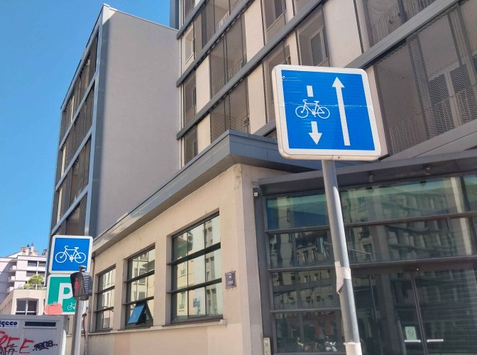 Parce qu´évidemment, j’ai retrouvé par automatisme mémoriel le chemin du domicile de mes premières années. Je vous épargnerai néanmoins la séquence émotion qui n’appartient qu’à moi pour n’en mentionner que le passage au débit de presse de la place Saint-Luc où j’avais mes habitudes, et d’où je ressors avec les derniers numéros de Sport-Auto et Auto-Retro. Il est d’ailleurs temps de m’en retourner dans le 6e, et je m’offre les courbes de la Montée de Choulans en descente, bien qu’à un rythme plus calme que celui que j’ai pu pratiquer quelques années en arrière. La circulation se fait plus dense au fur et à mesure que je m’enfonce dans la cité, où il apparaît clairement qu’à l’instar de sa collègue parisienne, Grégory Doucet -premier magistrat de la ville- à un petit vélo dans la tête. En plus des pistes précédemment mentionnées, la petite reine y est en effet autorisée dans la plupart des cas à prendre à revers les rues à sens unique. Un contre-sens en forme de non-sens quand la largeur de la rue suffit déjà à peine à la voiture, auquel s’ajoute la présence quasi systématique de panonceaux "M12" associés à la signalisation tricolore, affranchissant les deux-roues de l’obligation de respecter les feux rouges.