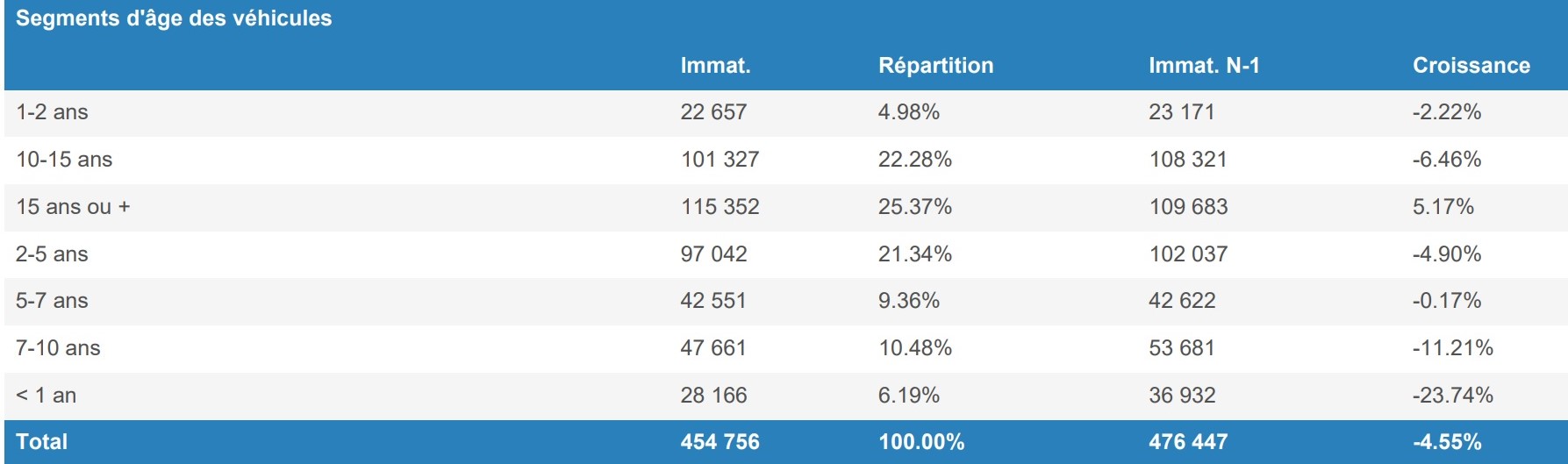 Depuis le début de l’année, le marché de l’occasion a perdu 11%, soit 284.000 véhicules de moins, avec un recul particulièrement fort des VO de moins d’un an (-23%, soit 45.000 VO perdus) et des VO de "1 à 2 ans" (-33%, soit 51.000 VO perdus).