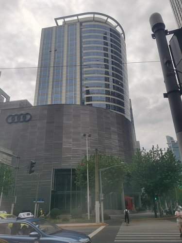 Le showroom Audi, juste au-dessus des fondations du siège de SAIC. (Crédit : Shwangtianyuan)