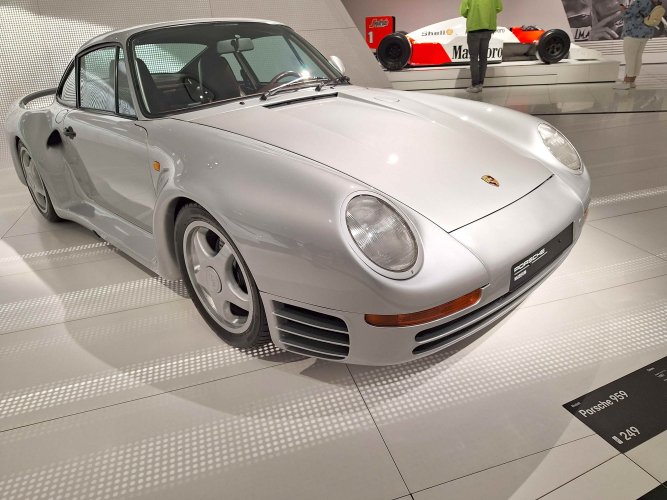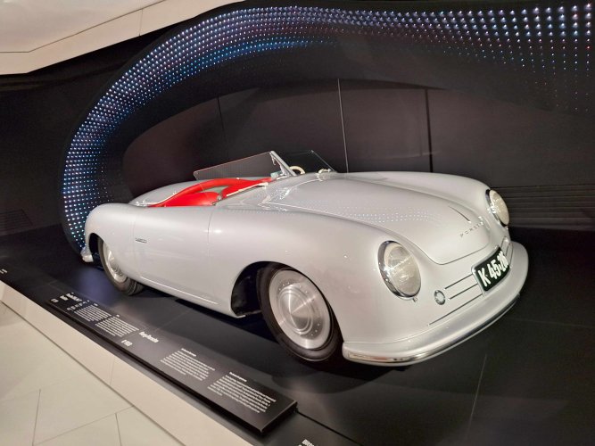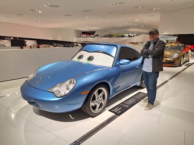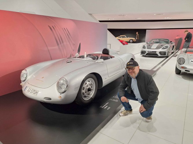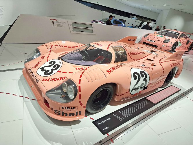 Plutôt que de vous imposer une fastidieuse visite guidée complète des lieux, je me contenterai de vous inciter à vous y rendre, d’autant plus qu’avec environ 80 autos exposées, le musée Porsche est loin de faire dans la démesure. Un choix qui, allié à une scénographie sobre juste comme il faut permet de mieux admirer chacune des pièces présentées en lui consacrant plus de temps. Mais histoire de vous mettre l’eau à la bouche, je ne peux résister au plaisir de vous livrer quelques coups de cœur, à commencer par la 550 Spyder me rappelant inévitablement la réplique fabriquée au Brésil qui y fut mon jouet de fin de semaine durant une dizaine d’années. S’y ajoutent une rare 356 A Super 1600 à la livrée "jadegrünmetallic" des plus seyantes, la très racée 904 Carrera GTS, une 911 RSR 3.0 orange vif ou encore la célèbre 917 "Cochon rose". Ajoutons encore les 959 en version "Straße" et Paris-Dakar que l’enfant des 80’s ne pouvait oublier, alors que l’enfant tout court sacrifia au rite de la photo au côté de l’adorable 911 Sally, dont Flash Mc Queen tombe amoureux dans "Cars", film d’animation préféré des petrolheads sorti en 2006.