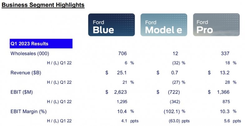 Comme prévu, les profits de l'entreprise ont été portés par les divisions dédiées aux particuliers et aux professionnels tandis que la division dédiée aux véhicules électriques (Ford Model e) reste déficitaire.