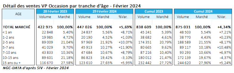 Hit-parade des immatriculations VP occasion par modèle février 2024 - Source NGC-Data