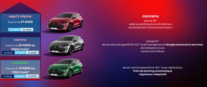 There is a pleasant surprise for the efforts made to control costs are reflected in the prices announced: the base version, equipped with the TCe 115 engine and manual transmission, is priced at 19 990 € (£17 200), which is 1 200 € (£1 050) less than the Clio V with the TCe 90. The TCe 115, which uses the same combustion engine as the 200 hp E-Tech hybrid found in the Austral, Espace, and Rafale, also offers low fuel consumption (71 mpg) and CO2 emissions of 92 g.
